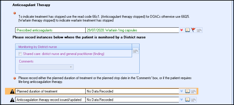 Training Tip - You may also want to use a Patient Warning from the Consultation Manager toolbar to record the planned duration of treatment. Alternatively, you could enter a Repeat Until Date when prescribing the anticoagulation medication. For more see the Consultation Manager help centre.