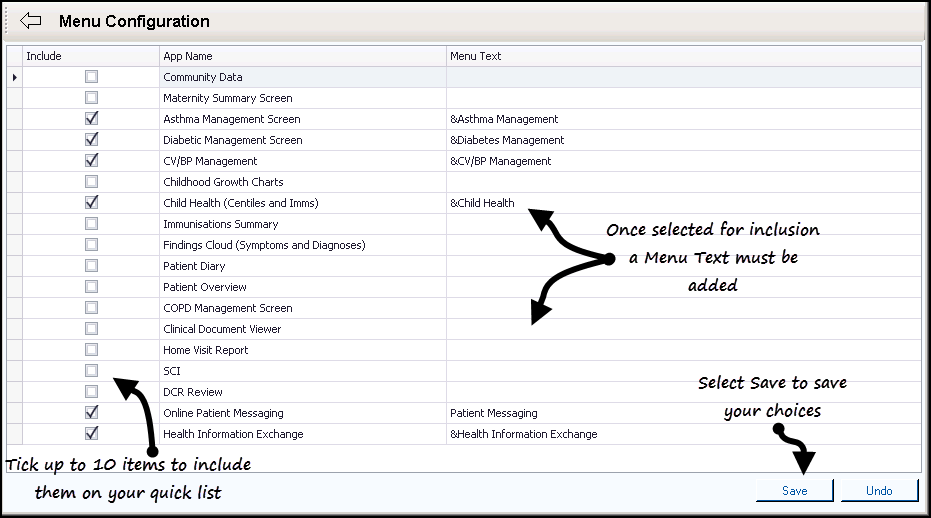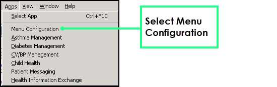 1. From Consultation Manager , select Apps - Menu Configuration.