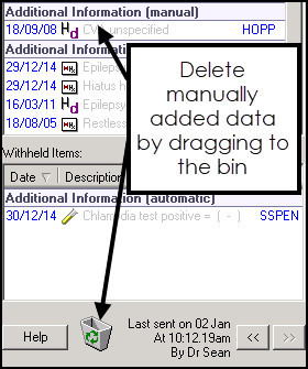 - Select the manually added additional information, remember you can hold CTRL and select more than one item, drag and drop the item(s) in to the Bin