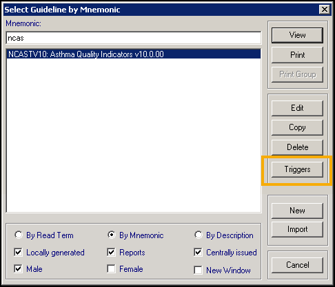 This lists all the clinical terms that act as triggers for the selected Guideline. You have the following options: