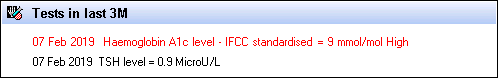 This section does not display if the patient has no test results recorded within the last 3 months.
