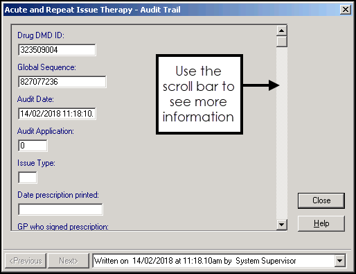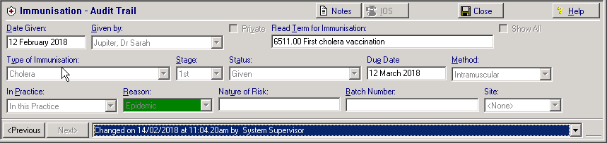 Within Consultation Manager, you can view an audit trail for every type of data entered on the patient record: