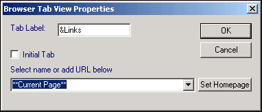 • Select name or add URL below - Select from the available list or enter the url for the web page required. Select Set Homepage to set this page as your Links tab home page: