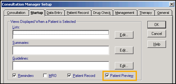 , select Consultation - Options - Setup. - Select the Startup tab.