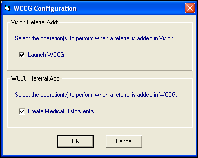 Vision 3 can be configured to automatically add a medical history and/or referral whenever a WCCG referral is created. This system-wide configuration is maintained in Management Tools - Control Panel.
