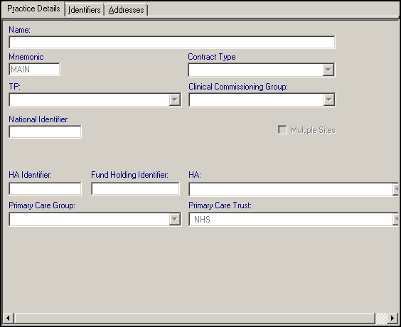 • Primary Care Trust - This can be selected for entry, as long as you have entered the PCT beforehand, with its code, in Organisation.