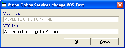 2. Double click the cancellation reason, the Vision Online Services change VOS Text screen displays.