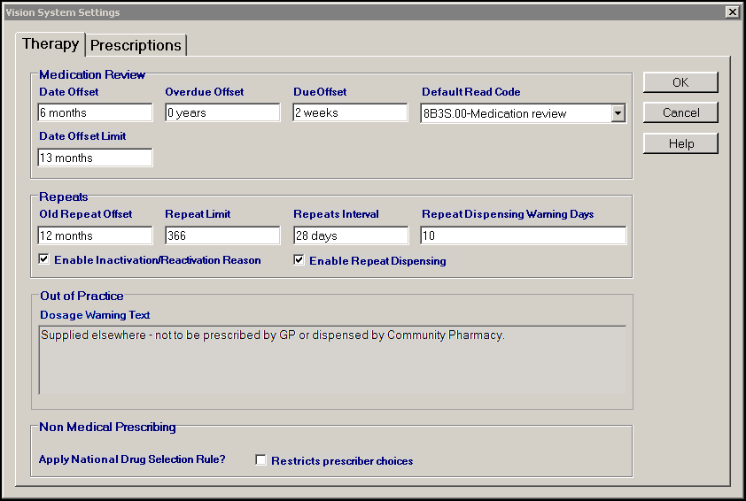Control Panel - File Maintenance - Settings is where you configure your practice-wide therapy settings.