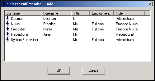 . - Select multiple names by holding the <Ctrl> key and highlighting all those required, a block of names can be selected by holding the <Shift> key, right click and select Add Staff Member(s).