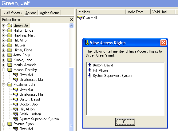 - View Access to this Staff - This lists the staff members who have Access Right to the mail of the name on which you right clicked.