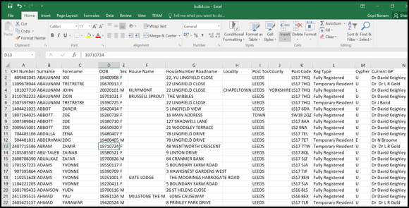 CHI Number - Please be aware, the leading zero is removed due to spreadsheet formatting.