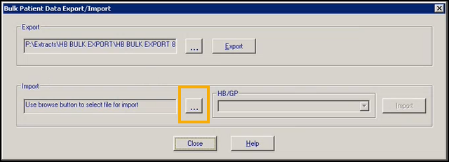 You are returned to the Bulk Patient Data Export/Import screen, select the appropriate HB/GP combination, as advised by your Health Board, and then select Import:
