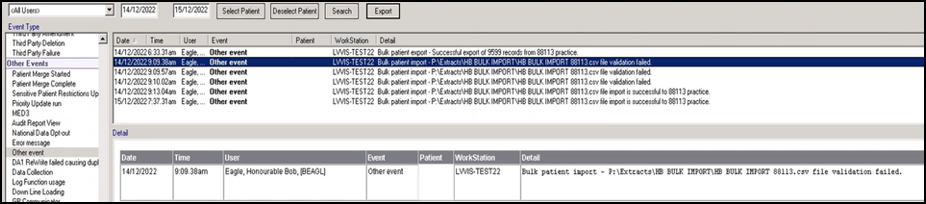 Select Action - Bulk Patient Data Export/Import: