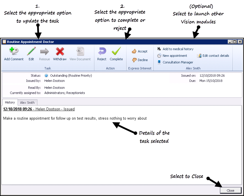 See Actioning and Completing Tasks for full details.