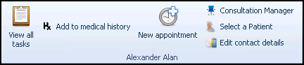- Patient - The patient name displays here to act as a reminder of which patient record the above actions update.