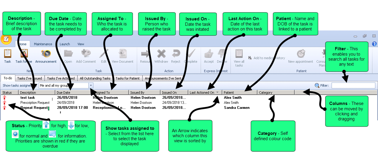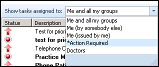 When ordered by priority, items are grouped according to whether they are Urgent , Routine , Low , Replies or notifications of Returned Tasks.