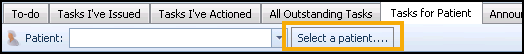 The Tasks for Patient tab allows you to view outstanding and completed tasks for a specific patient: