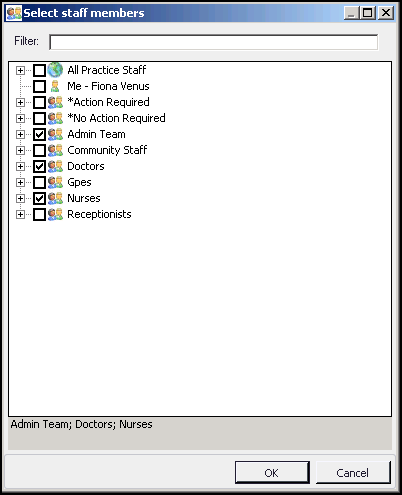 Note - Even if a member of staff is in more than one group, they only receive one copy of the task.- Comments - Type free text as required. If this task is linked to a patient, you can press the Insert key on your keyboard to list their medical records, select a record to insert in the text and select OK to save and return to the task. The Insert process can be repeated to add more than one medical record. See Adding Clinical Information to a Task for details.