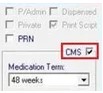 - CMS - Tick to trigger the CMS options, if you do not tick CMS the Medication Term, Dispensing Frequency and Alert options are not visible.