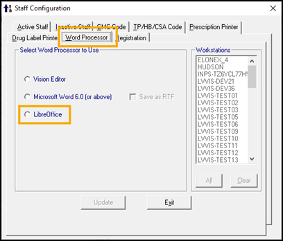 Training Tip - Re-create sufficient Vision 3 LibreOffice templates before switching all workstations to LibreOffice.To switch multiple workstations over to using LibreOffice as their default word processor: