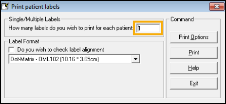 4. Decide how many labels you want to print for each patient - the default is 1.