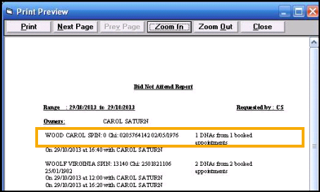 - Did Not Attend Report - This report lists and counts the number of patients who failed to attend their appointment.