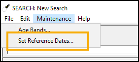 From the main Search and Reports screen or from within an ad-hoc search, select Maintenance - Set Reference Dates: