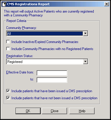 The Registrations Report lists all patients who are currently registered for Chronic Medication Service (CMS) with a Community Pharmacy.