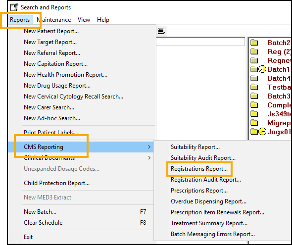 To run the CMS Registrations Report: