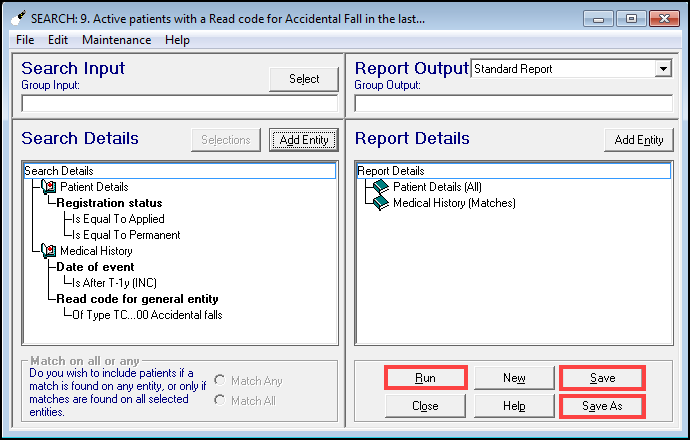 - Select Run / Print (this varies by category) to re-run the search with the existing criteria.