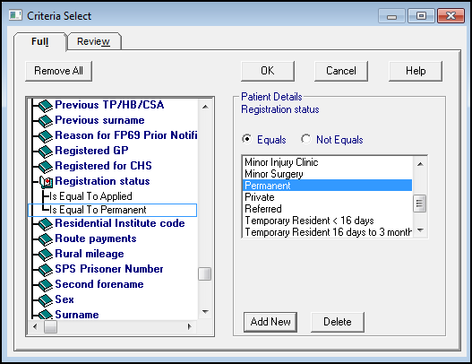 - Range - Useful for a range of patients, for example, surnames Aa - Cz