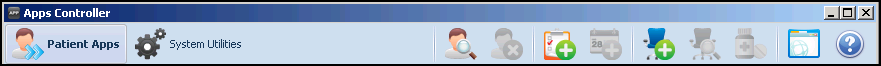 The Apps Controller toolbar allows you to move from one tab to another and perform common tasks with the tools provided. It displays: