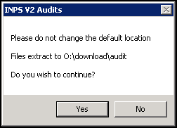 - When prompted, select Yes to the message 'Please do not change the default location. Files extract to O:\Download\Audit. Do you wish to continue?':