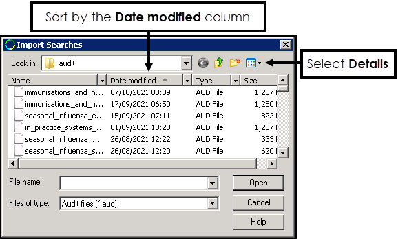 - Details, and double click on the Date Modified column so the most recent date is at the top. - Highlight the audit you require and select Open.