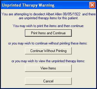 - View the unprinted therapy items - Select to display the unprinted prescription(s).