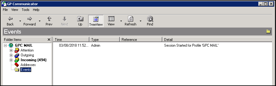 The Events folder contains a log of significant events for the current session. These events are not message specific but relate to timed schedule processing: