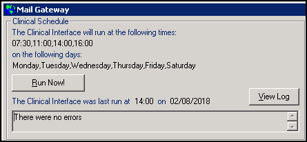 • View Log - Select to view a report of the last clinical interface run.