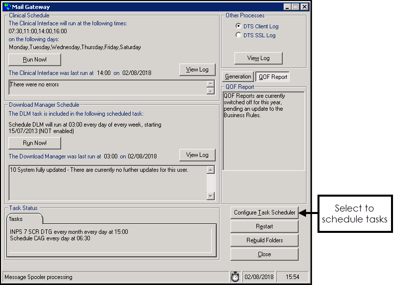 The scheduling of all non-clinical tasks is managed from Mail Gateway