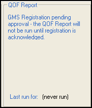 - Displays 'GMS Registration pending approval - the QOF Report will not be run until registration is acknowledged':