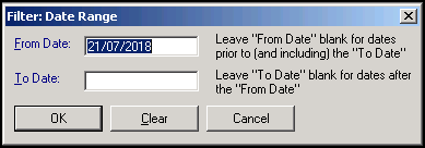 - Leave the To Date blank for dates up to (and including) the From Date.
