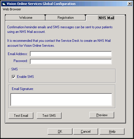 - From Control Panel - Online Services Configuration - Global Configure, select the NHS Mail tab.