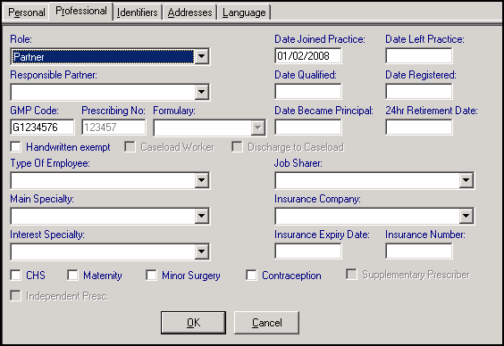 - Dates Joined and Date Left Practice - Enter the date the staff member joined the practice. Once a GP has retired, left or died, enter a date In Date Left Practice, but leave blank until then.