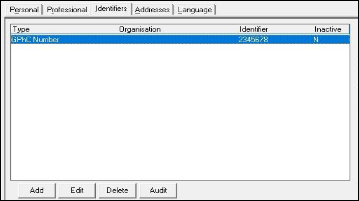 PharmacistPrescribing No - Enter the appropriate Prescribing number, usually a unique 7 letter code for each practice worked at, for example '1234567'.