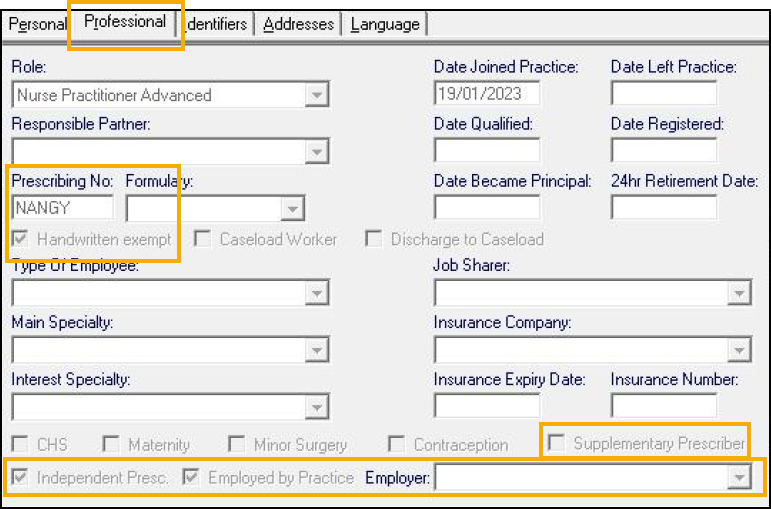 Advanced Nurse PractitionersPrescribing No - Enter the appropriate Prescribing number, usually a unique 5 letter code for each practice worked at, for example 'NANGY'.