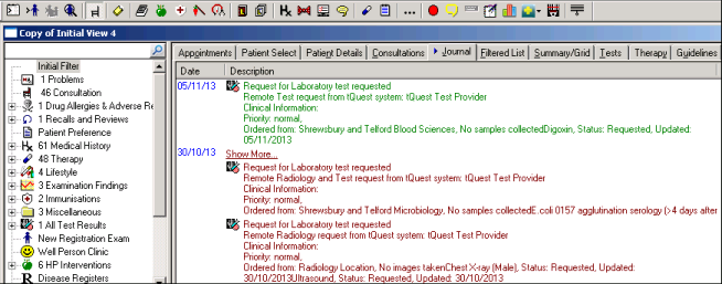 - Remote Radiology and Test request from tQuest system… - which indicates a mixture of radiology and pathology tests.