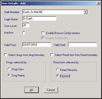 - Valid From and Valid Until - Valid From populates with today's date, leave Valid Until blank, but once a person has left the practice, enter the date they leave.
