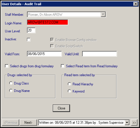 to the right of the bottom window, you reach a second audit trail which you can scroll down to show all the entries on the User Details - Audit Trail screen: