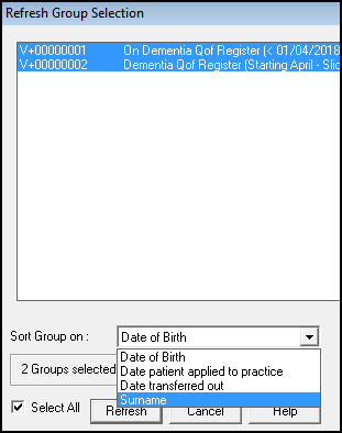 - Select Group - Refresh Selected Group(s) and the Refresh Group Selection screen displays.