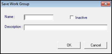 5. The Save Work Group screen displays, enter a name and description for this Work Group: