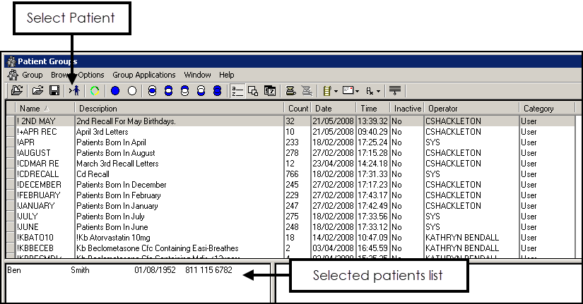3. The patient displays in the bottom left section, repeat to add further patients to the Work Group:
